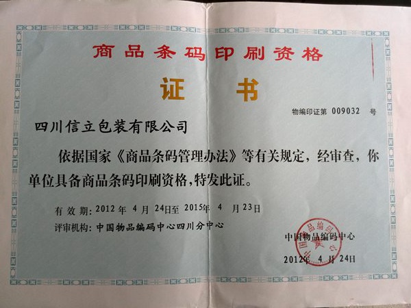商品條碼印刷資格證