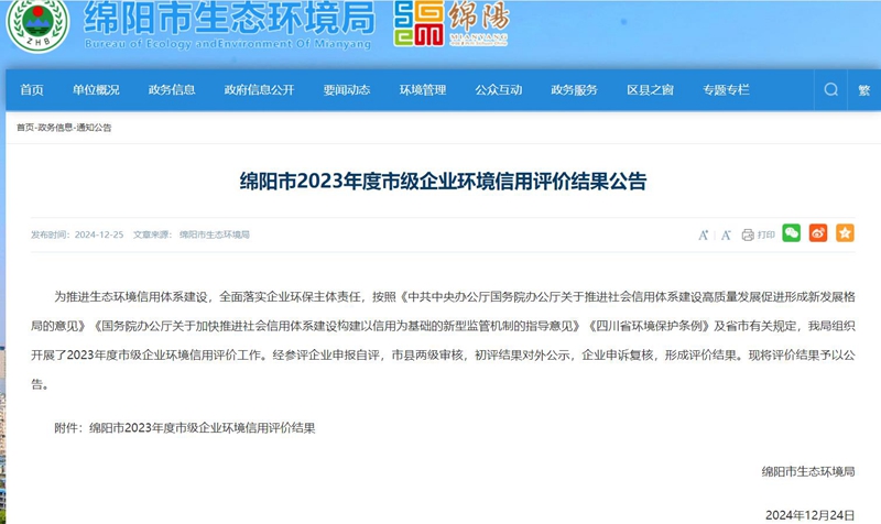 近日,從綿陽市生態(tài)環(huán)境局發(fā)布的關(guān)于《綿陽市2023年度市級企業(yè)環(huán)境信用評價結(jié)果公告》中獲悉,四川信立包裝有限公司獲評綿陽市2023年度“環(huán)保誠信企業(yè)”。